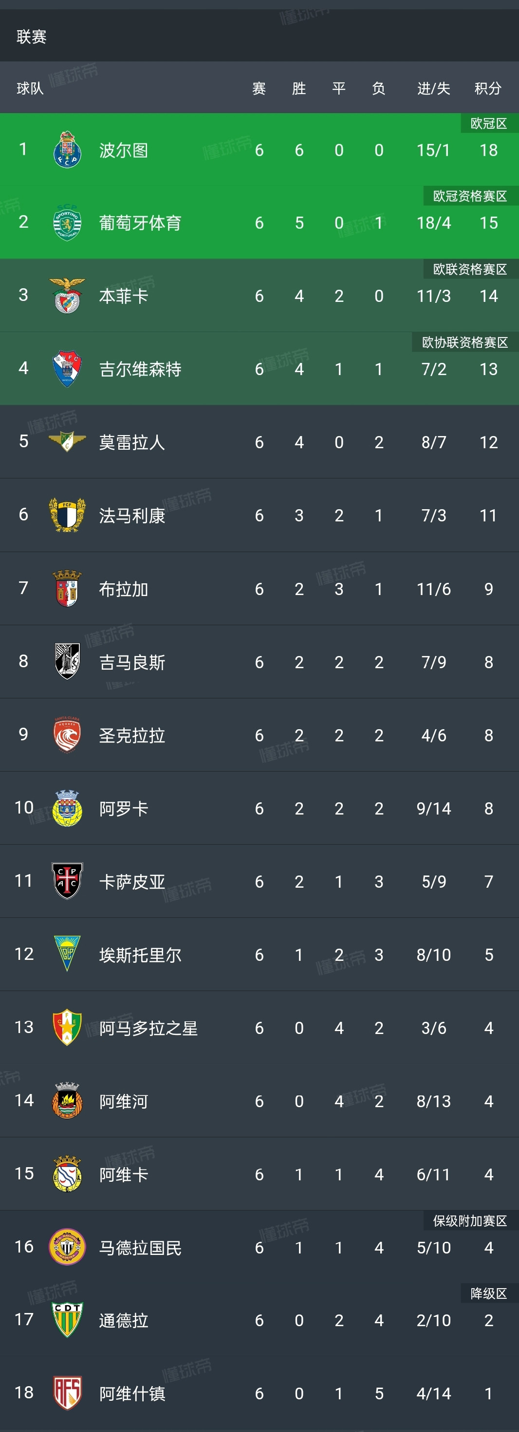 本场赛事 之后,本菲卡四胜两平保持不败积14分,但是波尔图六连胜18分领跑,本菲卡追赶 4分。阿维河拿到1分之后升至第14位。