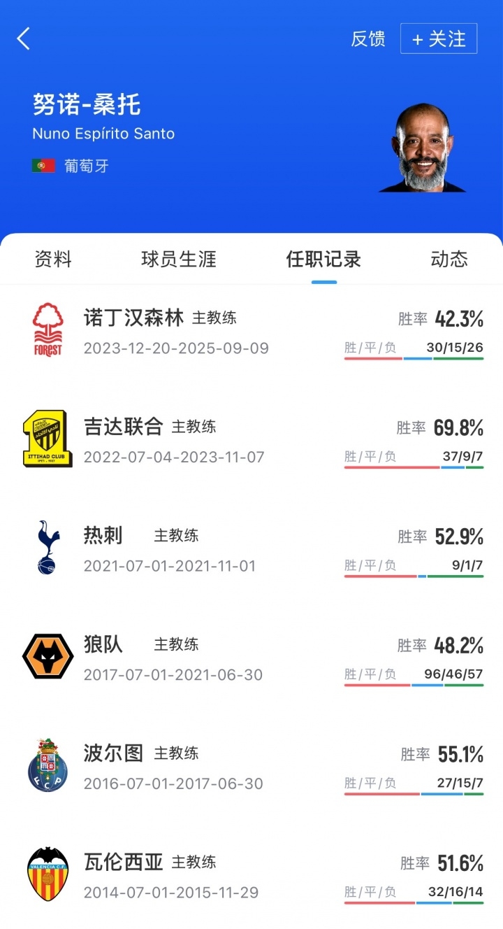 努诺-桑托是原诺丁汉森林主帅,由于和球队高层关系不佳,欧洲杯直播吧加上开赛英超3轮4分,努诺在9月初被诺丁汉森林解雇。