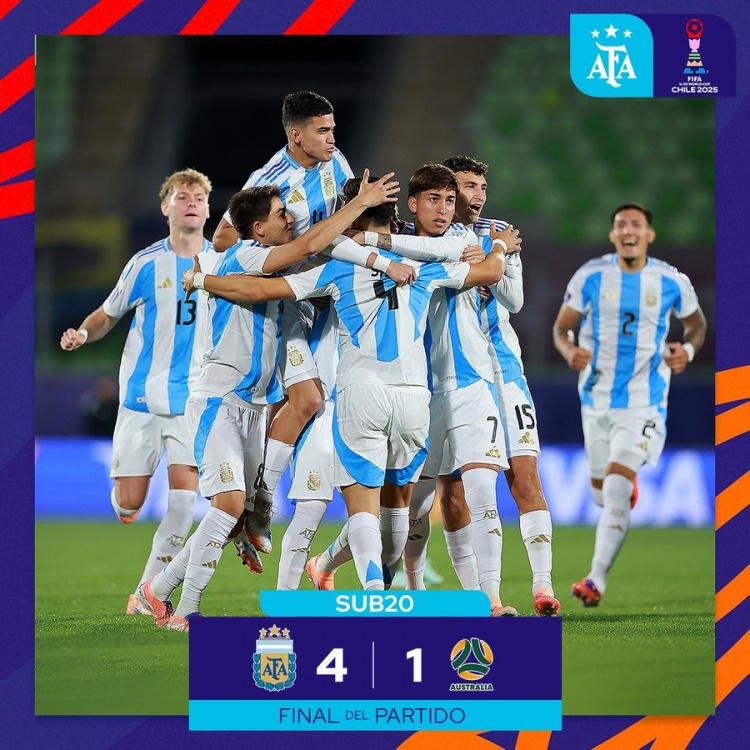 10月2日讯 世青赛小组赛第二轮赛事 ,阿根廷4-1击败澳大利亚,提前晋级下一轮 16强。
