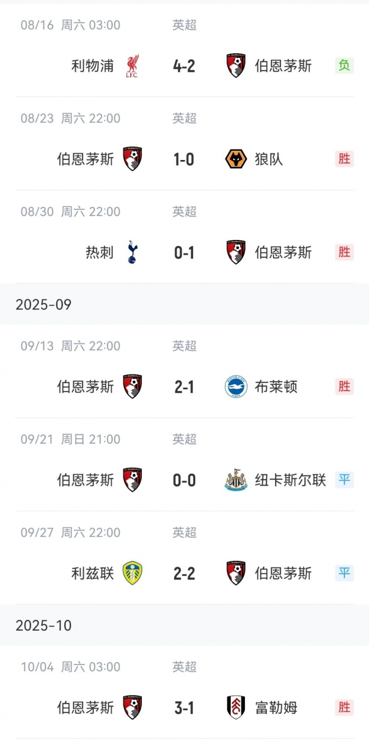 在首轮不敌利物浦后,大部分人都不看好伯恩茅斯今年的形势,但在之后的6轮赛事 中,伯恩茅斯4胜2平保持不败,先赛暂时跻身英超积分榜第2。