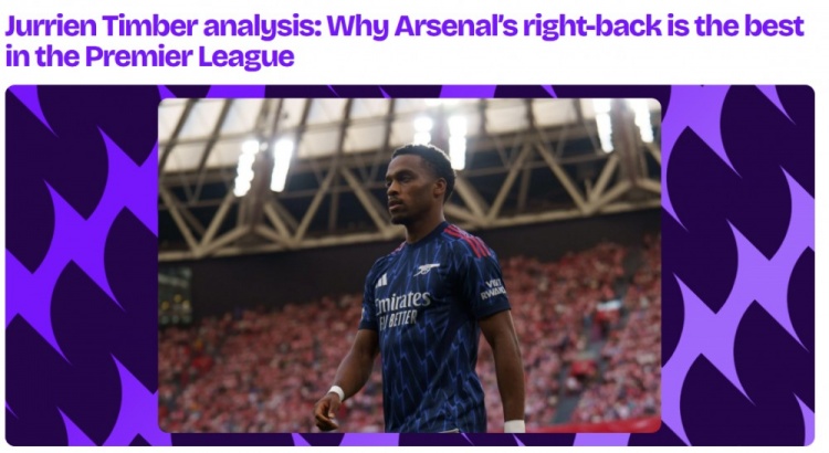 10月8日讯 OPTA撰文列出数据,在新赛季开局七轮过后,阿森纳后场球员廷伯凭借其攻防两端的统治级表现,已成为英超最佳右后场球员的强劲 角逐 者,甚至可以说就是英超该位置当之无愧的第一人。
