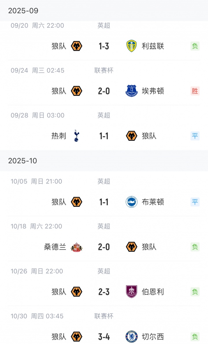 佩雷拉9月续约后狼队战绩↓