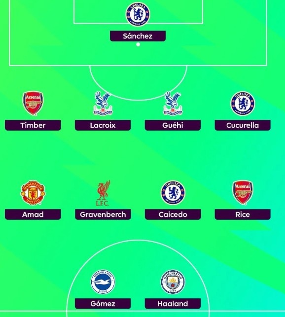 后场球员:廷伯(阿森纳)、拉克鲁瓦(水晶宫)、格伊(水晶宫)、库库雷利亚(切尔西)